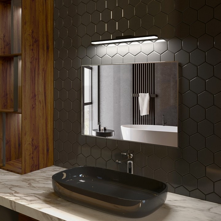 Подсветка оснащена одним светодиодным плафоном, который обеспечивает максимальную мощность в 12 Вт. Направление света вниз и вперед позволяет создать мягкое и равномерное освещение, что особенно важно при использовании зеркала. Лампы в комплекте уже установлены, что делает установку еще более удобной.