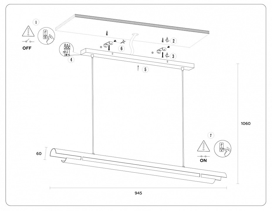 Светильник выполнен в стильном техно-дизайне, который отлично впишется в современные интерьеры. Его степень пылевлагозащиты IP-20 гарантирует надежную работу в помещениях, таких как кухня, где важно учитывать особенности эксплуатации. Размер упаковки составляет 958x68x102 мм, что делает его удобным для транспортировки и установки.