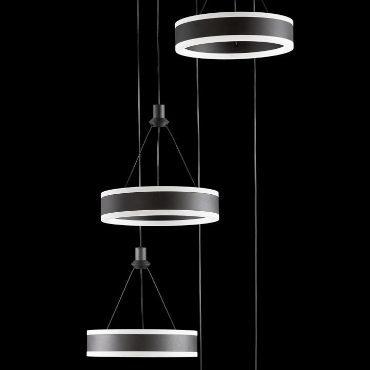 С диаметром 460 мм и высотой 600 мм, светильник идеально подходит для помещений площадью до 50 м². Он оснащен пятью цилиндрическими плафонами, которые можно направлять вверх и вниз, обеспечивая равномерное и комфортное освещение. Благодаря использованию светодиодных ламп мощностью до 20 Вт, вы получите яркий свет при минимальном потреблении энергии.