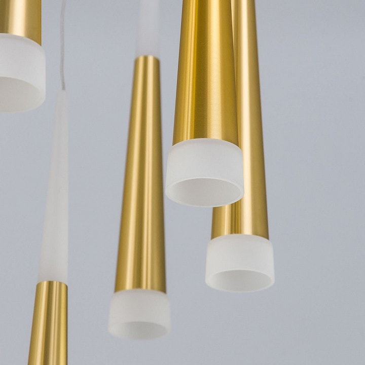 Стиль модерн, в котором выполнен светильник, добавит изысканности вашему интерьеру. Конусообразные плафоны, направленные вниз, создают мягкое и приятное освещение, подчеркивая красоту вашего пространства. Масса светильника составляет 7.72 кг, что делает его надежным и устойчивым элементом декора.
