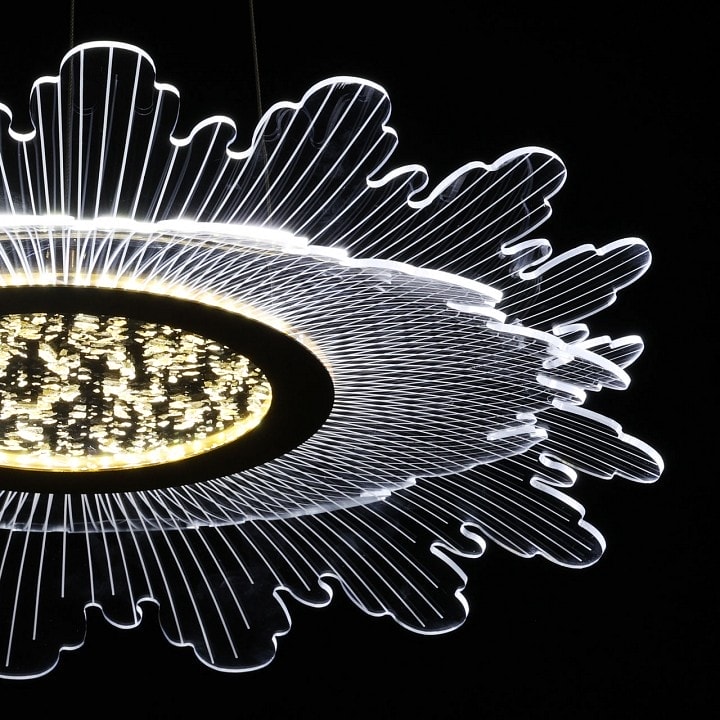 Светильник оснащен светодиодной лампой мощностью до 42 Вт, что обеспечивает высокую энергоэффективность и долговечность. Напряжение питания составляет 220 В, а площадь освещения достигает 21 м², что делает его отличным выбором для освещения больших пространств.