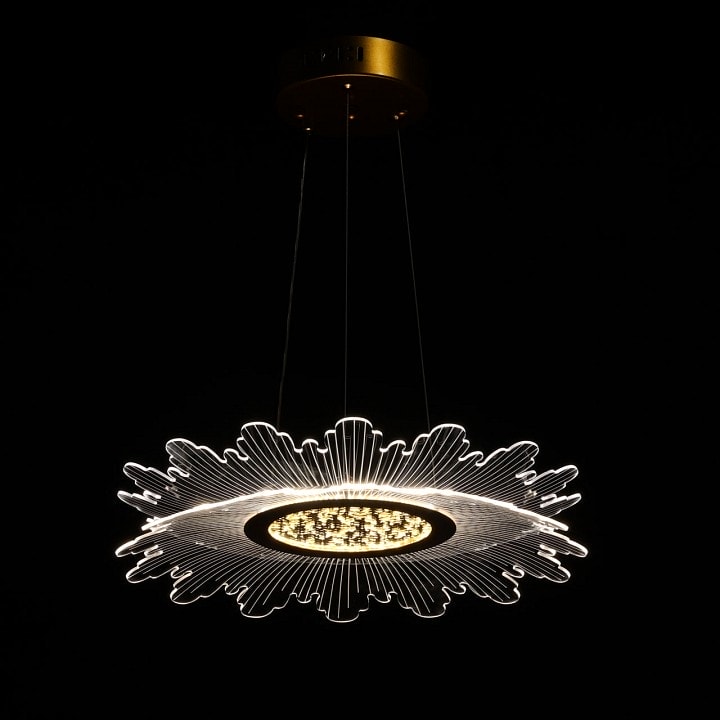 Светильник имеет диаметр 440 мм и высоту 750 мм, что делает его подходящим для размещения в гостиной или других помещениях, где требуется качественное освещение. Благодаря одному плафону, выполненному в форме цветка ромашки, светильник создает мягкий и рассеянный свет, который идеально подходит для создания комфортной обстановки.