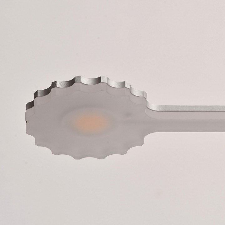 В комплекте с светильником идут светодиодные лампы мощностью до 5 Вт каждая, что обеспечивает общую мощность в 25 Вт. Это позволяет освещать площадь до 12.5 м², что делает его идеальным для небольших и средних кухонь. Напряжение питания составляет 220 В, что соответствует стандартам большинства домашних электросетей.