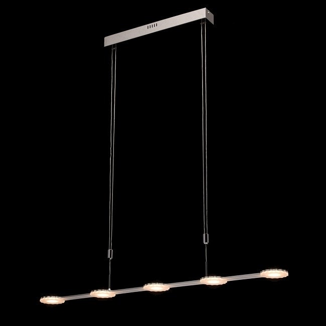 Светильник DeMarkt Ральф изготовлен в Германии и отличается высоким качеством и надежностью. Его высота составляет 1550 мм, что позволяет разместить его на нужной высоте, обеспечивая оптимальное освещение. С пятью плафонами, направленными вниз, он создает равномерное и комфортное освещение, идеально подходящее для кухни.