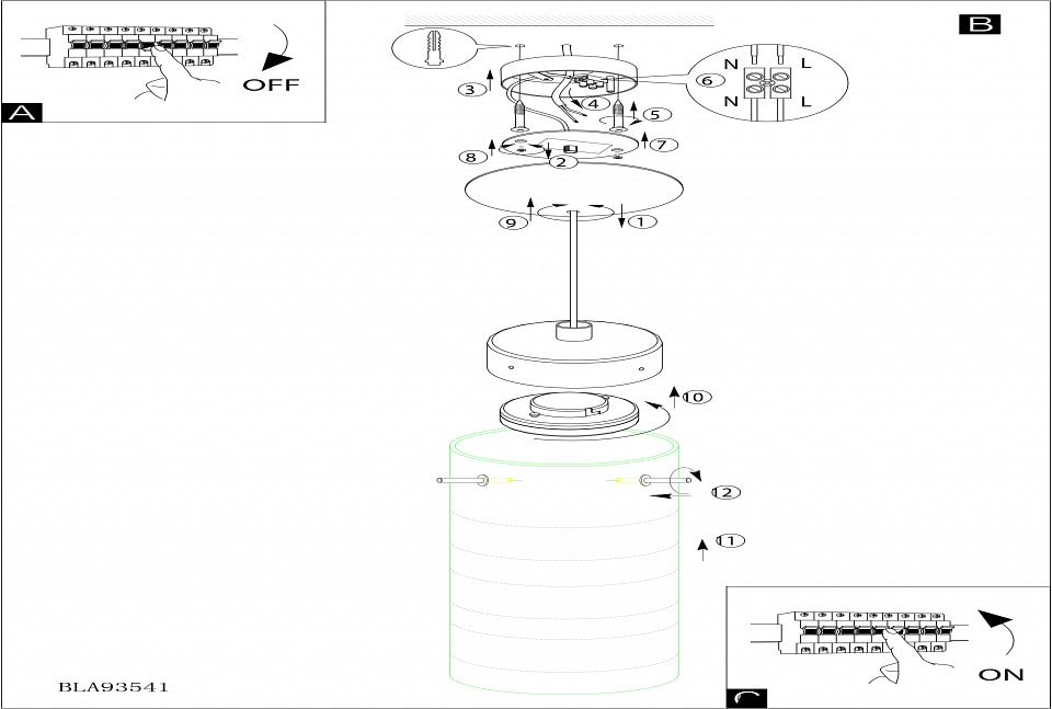 Светильник Eglo Olvero 93541 имеет степень пылевлагозащиты IP20, что делает его подходящим для использования в помещениях с низким уровнем влажности, таких как гостиные или спальни. Его масса составляет всего 0.894 кг, что облегчает установку и монтаж на потолке.