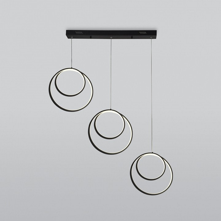 С высотой всего 350 мм, этот подвесной светильник идеально подходит для установки на потолке, обеспечивая равномерное освещение площади до 33.8 м². Он оснащен тремя светодиодными плафонами, которые направлены вниз, создавая мягкий и комфортный свет. Максимальная мощность каждой лампы составляет 22.5 Вт, а общая мощность светильника достигает 67.6 Вт.
