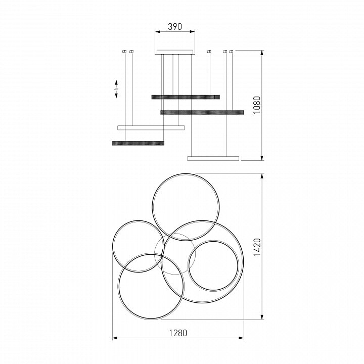 С высотой 600 мм и пятью плафонами, этот светильник обеспечивает равномерное освещение площади до 80 м². Каждый плафон направлен в стороны, что позволяет создать мягкий и комфортный свет, идеально подходящий для вечерних встреч с друзьями или семейных ужинов. В комплект входят светодиодные лампы мощностью до 32 Вт, что обеспечивает общую мощность в 160 Вт.
