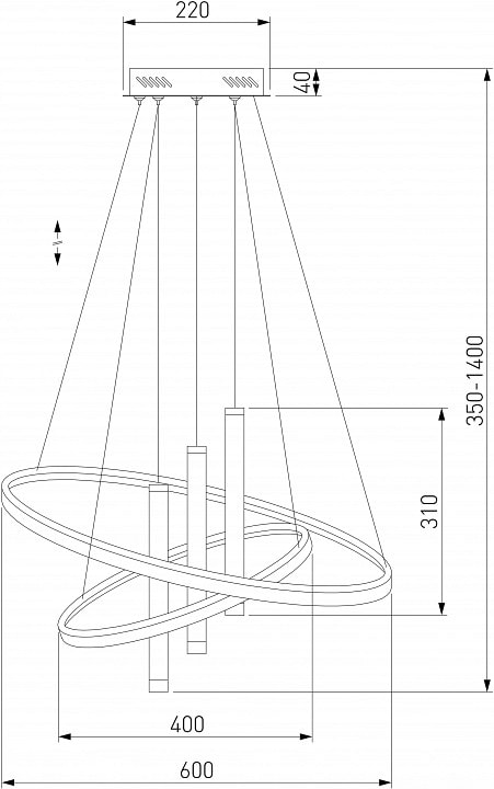 С диаметром 600 мм и высотой 350 мм, светильник идеально впишется в любое пространство, обеспечивая освещение площадью до 35.5 м². Он оснащен одной светодиодной лампой мощностью до 71 Вт, что гарантирует яркий и экономичный свет. Направление плафонов позволяет регулировать поток света в стороны, вверх и вниз, что делает его универсальным для различных стилей интерьера.