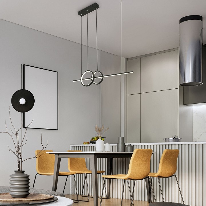 Светильник выполнен в стиле модерн, что делает его универсальным решением для различных интерьеров. Его высота составляет всего 260 мм, что позволяет легко разместить его в помещениях с низкими потолками. Подвесной светильник оснащен одним плафоном, который можно направлять в стороны, вверх или вниз, обеспечивая равномерное освещение площади до 18.5 м².