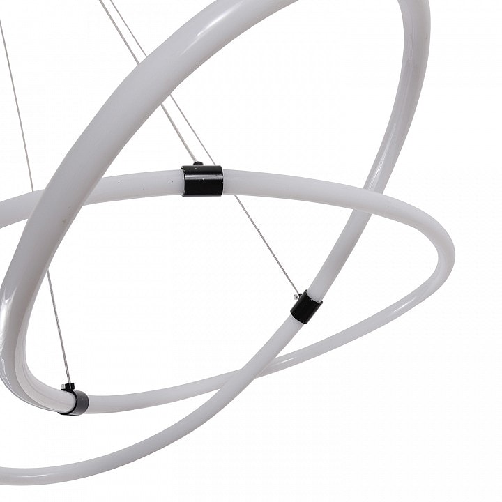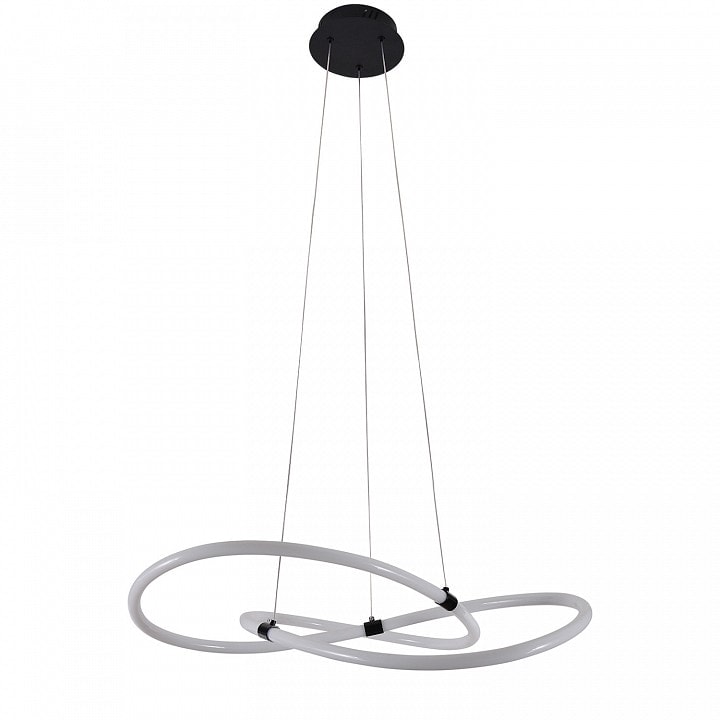 Светильник выполнен в современном стиле, что делает его универсальным элементом декора. Направление плафонов, которые могут быть направлены в стороны и вниз, позволяет равномерно распределять свет по всему помещению. Форма плафонов имеет сложный дизайн, что добавляет изюминку в общий вид светильника.