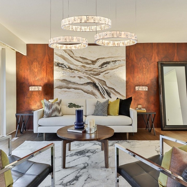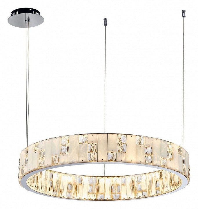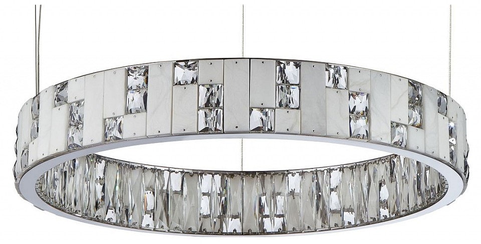 Светильник оснащен двумя светодиодными лампами общей мощностью 68 Вт, что обеспечивает яркое и равномерное освещение площади до 34 м². Направление плафонов, которые расположены в стороны и вниз, позволяет создать мягкий свет, идеально подходящий для вечерних встреч с друзьями или семейных ужинов.