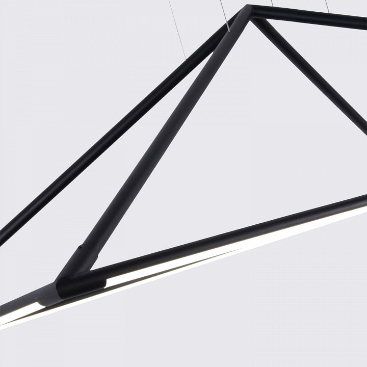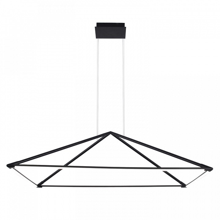 Светильник выполнен в стиле модерн и имеет уникальную форму плафона в виде прямоугольной пирамиды, что придаёт ему оригинальный вид. Высота светильника составляет 1880 мм, что позволяет ему стать центральным элементом освещения в комнате. Он оснащён одной светодиодной лампой мощностью до 52 Вт, что обеспечивает яркое и равномерное освещение площади до 26 м².