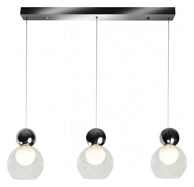 Светильник выполнен в современном стиле и идеально впишется в любой интерьер. Его высота составляет всего 200 мм, что делает его компактным и удобным для установки на потолке. Три светодиодных плафона в форме сферы направлены вниз, обеспечивая равномерное и яркое освещение на площади до 7.5 м².