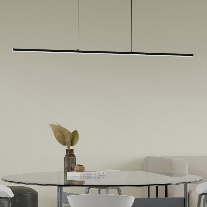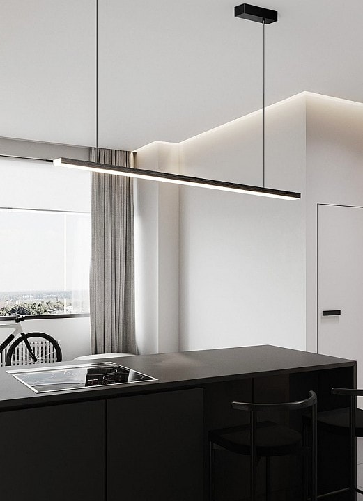 Светильник оснащен одной светодиодной лампой мощностью до 48 Вт, что обеспечивает яркое и равномерное освещение площади до 24 м². Благодаря направлению света вниз, он отлично подходит для освещения рабочих зон, таких как столы и кухонные поверхности.