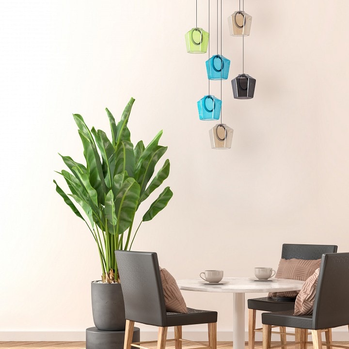 Стиль модерн, в котором выполнен светильник, позволяет ему легко вписаться в любой интерьер, добавляя нотку элегантности и современности. Плафоны в форме колокола, направленные вниз, создают мягкое и приятное освещение, идеально подходящее для вечерних встреч с друзьями или семейных ужинов.
