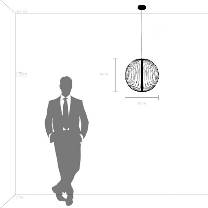 С диаметром 600 мм и высотой 700 мм, светильник идеально подходит для потолочного размещения, обеспечивая равномерное освещение площади до 11.5 м². Его стиль в духе техно добавит нотку современности в любой интерьер. Один плафон, выполненный в форме сферы, направляет свет вниз, создавая мягкое и комфортное освещение.