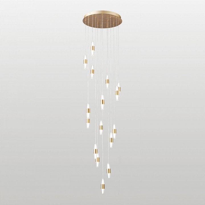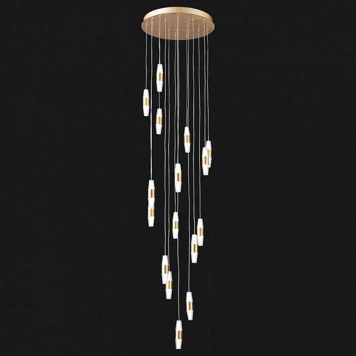 Светильник выполнен в стиле модерн, что делает его универсальным элементом интерьера, который легко впишется в любой современный дизайн. Форма плафонов - конус круглый усеченный, что добавляет изысканности и оригинальности. Степень пылевлагозащиты IP20 гарантирует надежность и долговечность в эксплуатации.