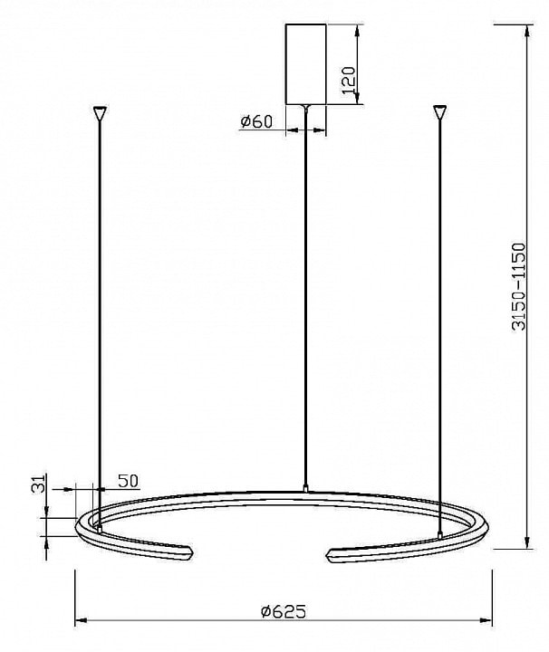 С диаметром 625 мм и высотой 1150 мм, светильник идеально подходит для помещений площадью до 10 м². Он оснащен одной светодиодной лампой мощностью до 20 Вт, что обеспечивает яркое и экономичное освещение. Направление света вниз создает мягкий и равномерный свет, который отлично подходит для вечерних встреч с друзьями или семейных ужинов.