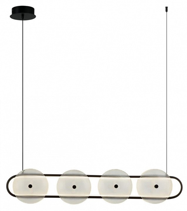 Светильник имеет степень пылевлагозащиты IP20, что делает его безопасным для использования в помещениях с нормальными условиями. Плафоны имеют круглую плоскую форму, что добавляет элегантности и современности в общий вид светильника.