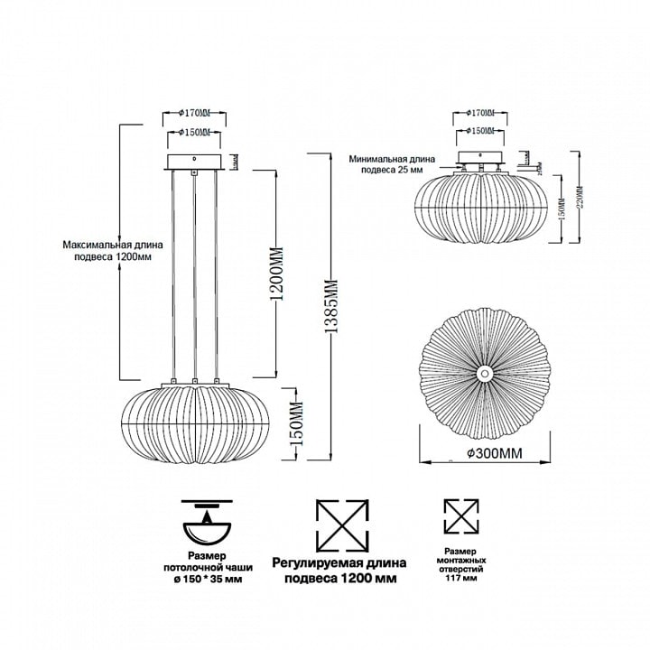 Светильник имеет степень пылевлагозащиты IP20, что делает его подходящим для использования в помещениях с нормальными условиями. Форма плафона в виде сферы добавляет оригинальности и современности, а его стильный дизайн подчеркивает индивидуальность вашего интерьера.