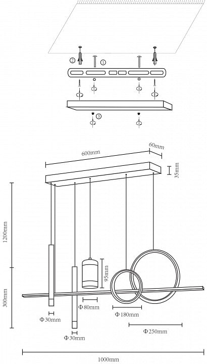 С высотой 2000 мм и шестью плафонами, этот светильник обеспечивает равномерное освещение площади до 15 м². Каждый плафон направлен вниз, что позволяет создать мягкий и комфортный свет, идеально подходящий для вечерних встреч с друзьями или семейных ужинов.