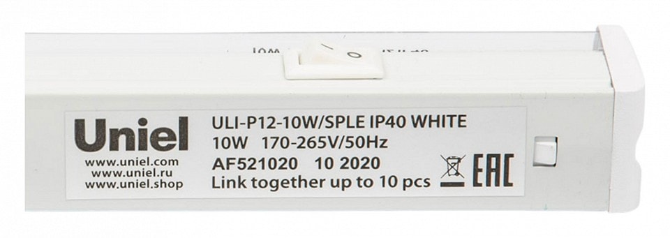 Светильник Uniel ULI-P12 имеет степень пылевлагозащиты IP40, что делает его подходящим для использования в помещениях с повышенной влажностью. Удобный выключатель позволяет легко управлять освещением, а компактные размеры упаковки (700x38x26 мм) делают его транспортировку и установку максимально удобными.