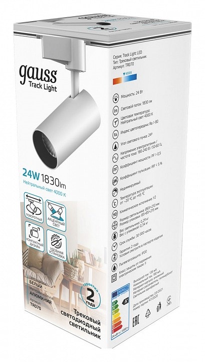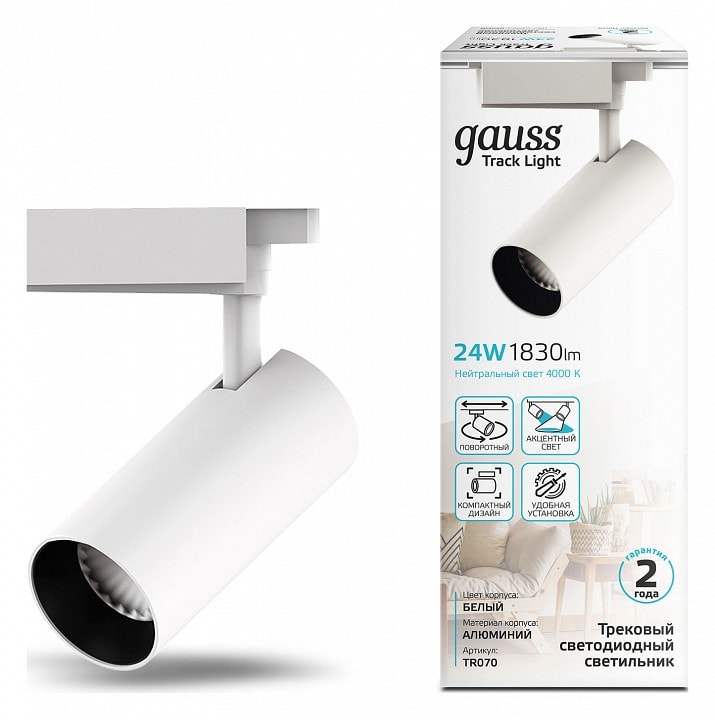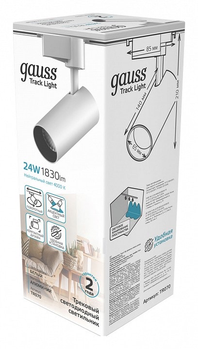 Светильник Gauss TR TR070 оснащен одним цилиндрическим плафоном, который обеспечивает равномерное и яркое освещение площадью до 12 м². В комплект входит светодиодная лампа мощностью до 24 Вт, что позволяет значительно экономить электроэнергию по сравнению с традиционными лампами. Напряжение питания составляет 120-240 В, что делает его универсальным для использования в различных условиях.