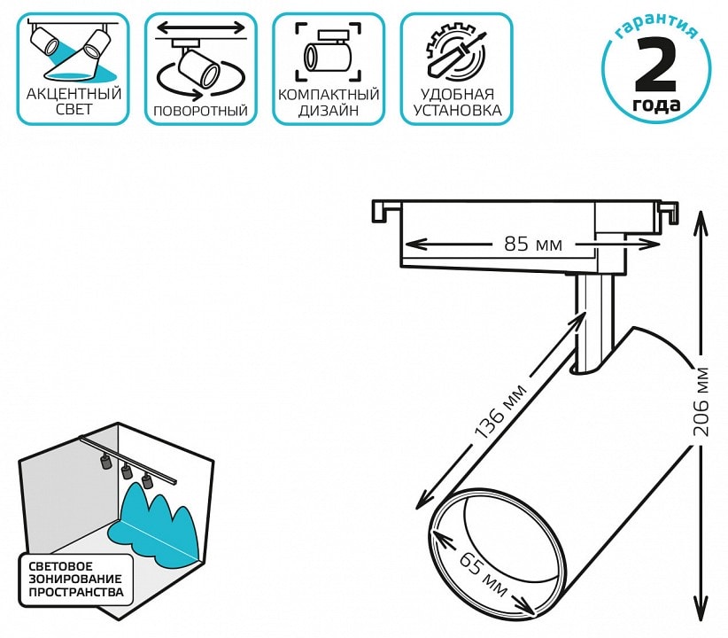 С массой всего 0.29 кг, светильник легко устанавливается на потолок, а его современный дизайн гармонично впишется в любой интерьер. Если вы хотите добавить в свое пространство элемент стиля и функциональности, светильник на штанге Gauss TR TR083 — это то, что вам нужно.