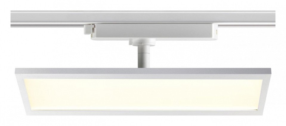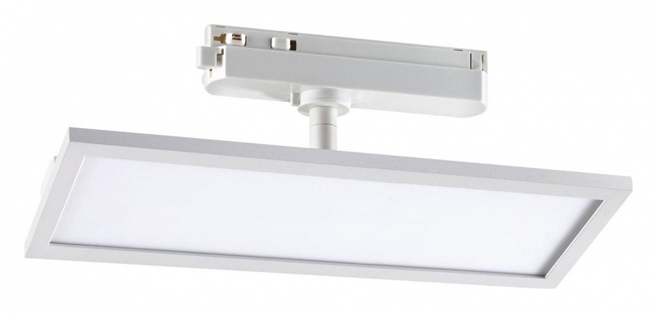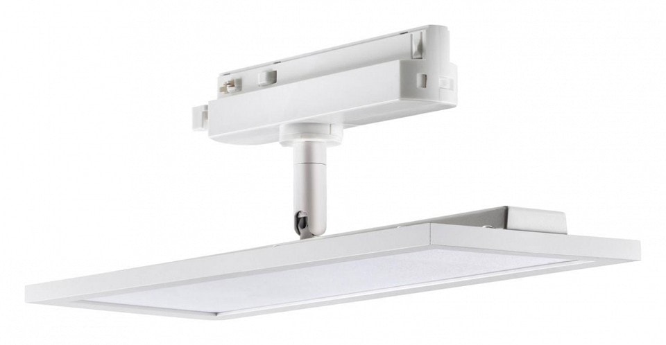 Светильник работает от сети с напряжением 220 В и требует однофазный трек для установки. Степень пылевлагозащиты IP 20 гарантирует надежную работу в помещениях с низким уровнем влажности. Плафон имеет прямоугольную плоскую форму, что добавляет современный акцент в интерьер.