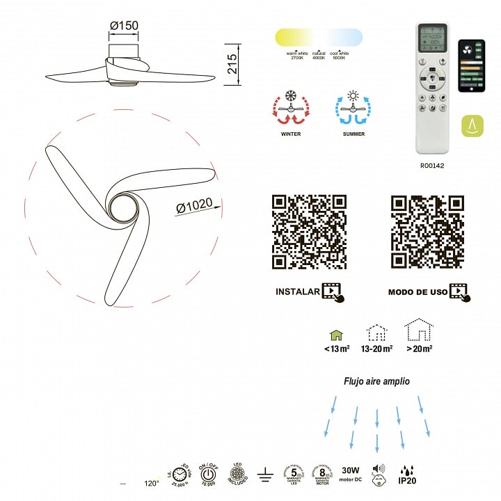 Светильник с вентилятором Mantra Groenland 9066 не только освещает пространство, но и обеспечивает комфортный климат благодаря встроенному вентилятору. Это особенно актуально в теплое время года, когда свежий воздух необходим для создания уюта в вашем доме.