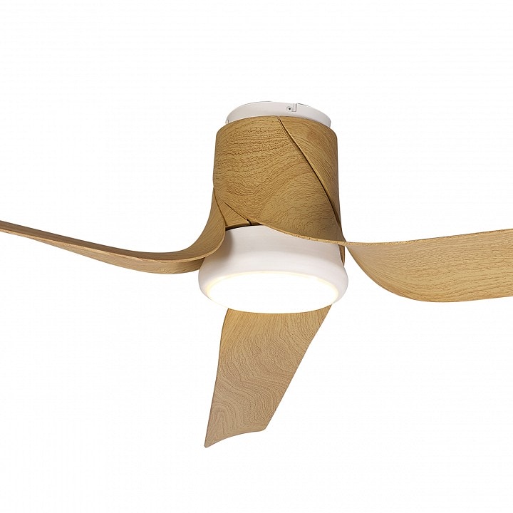 С диаметром 1335 мм и высотой 275 мм, светильник идеально подходит для размещения в гостиной, обеспечивая освещение площадью до 15 м². Он оснащен одной светодиодной лампой мощностью до 30 Вт, что гарантирует яркое и экономичное освещение. В комплекте идет пульт ДУ, позволяющий легко управлять светом и вентилятором, создавая комфортную атмосферу в вашем доме.