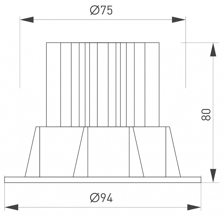 Размер врезного отверстия составляет 75 мм, что упрощает установку и позволяет использовать светильник в различных потолочных конструкциях. Упаковка имеет размеры 145x120x100 мм, что делает его удобным для транспортировки и хранения.
