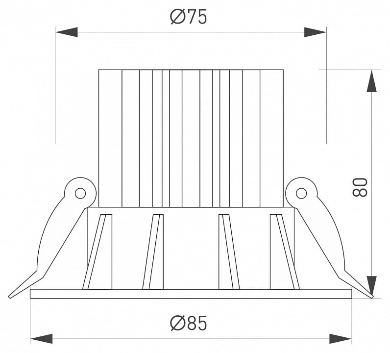 Светильник Arlight ATOLL 044593 имеет степень пылевлагозащиты IP54, что позволяет использовать его в помещениях с повышенной влажностью, таких как ванные комнаты. Размер врезного отверстия составляет 75 мм, что упрощает установку и замену.