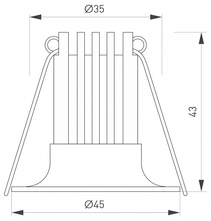 Размер врезного отверстия составляет d35 мм, что позволяет легко установить светильник в потолок. Упаковка имеет размеры 110x80x60 мм, что делает его удобным для транспортировки и хранения.