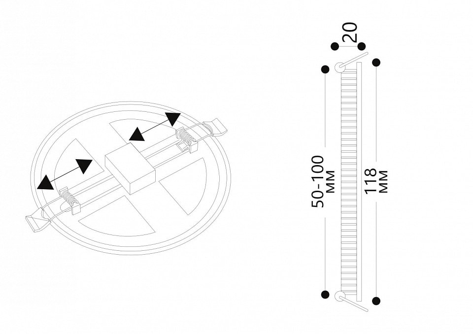 Установка светильника не займет много времени благодаря размеру врезного отверстия от 50 до 100 мм. Упаковка имеет размеры 25x125x125 мм, что делает его удобным для транспортировки и хранения.