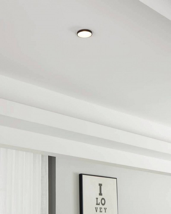 С диаметром всего 93 мм и глубиной 35 мм, он идеально впишется в любой потолок, не занимая много места. Светильник предназначен для установки в потолок и обеспечивает освещение площади до 17.5 м², что делает его идеальным выбором для гостиных и других жилых помещений.