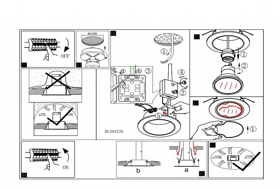 В комплекте с Eglo Peneto 94235 идут светодиодные лампы, что избавляет вас от необходимости дополнительно их приобретать. Размер врезного отверстия составляет 65 мм, что делает установку максимально простой и быстрой.