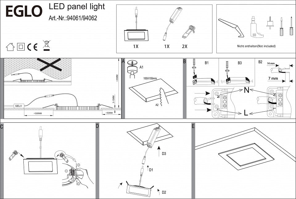 С глубиной всего 25 мм, этот встраиваемый светильник легко впишется в любой потолок или стену, а размер врезного отверстия 155x155 мм делает установку простой и быстрой. Степень пылевлагозащиты IP20 гарантирует надежную работу в помещениях с нормальными условиями эксплуатации.