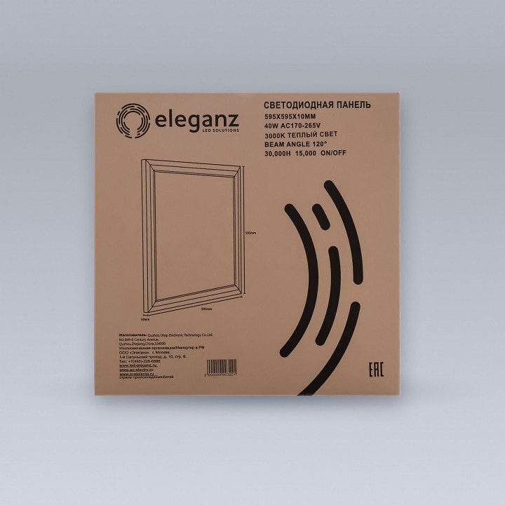 Размер упаковки составляет 600x600x40 мм, что делает его удобным для транспортировки и установки. Производитель — российская компания Eleganz, известная своим качеством и современным дизайном.