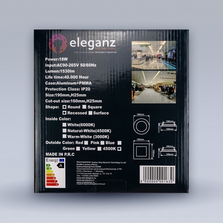 Размер врезного отверстия составляет 160 мм, что позволяет легко установить светильник в потолок. Упаковка имеет размеры 210x220x40 мм, что делает его удобным для транспортировки и хранения. Степень пылевлагозащиты IP-22 гарантирует надежную работу светильника в условиях повышенной влажности.
