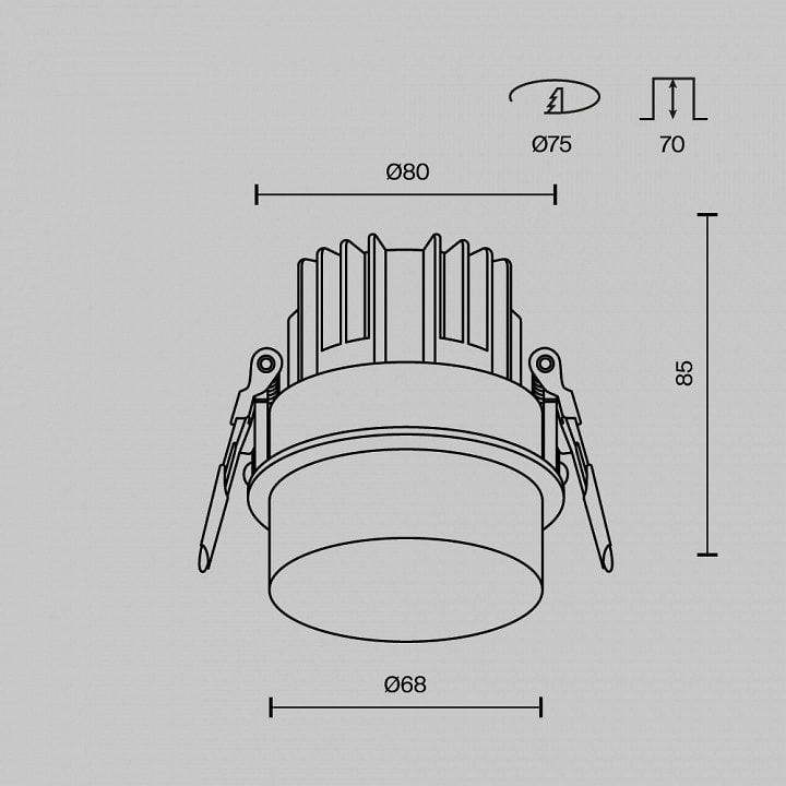 С диаметром всего 80 мм и глубиной 70 мм, он идеально впишется в любой интерьер, а его минималистичный стиль в техно-формате добавит нотку современности. Высота светильника составляет 85 мм, а выступ – всего 15 мм, что делает его незаметным, но при этом эффективным источником света.