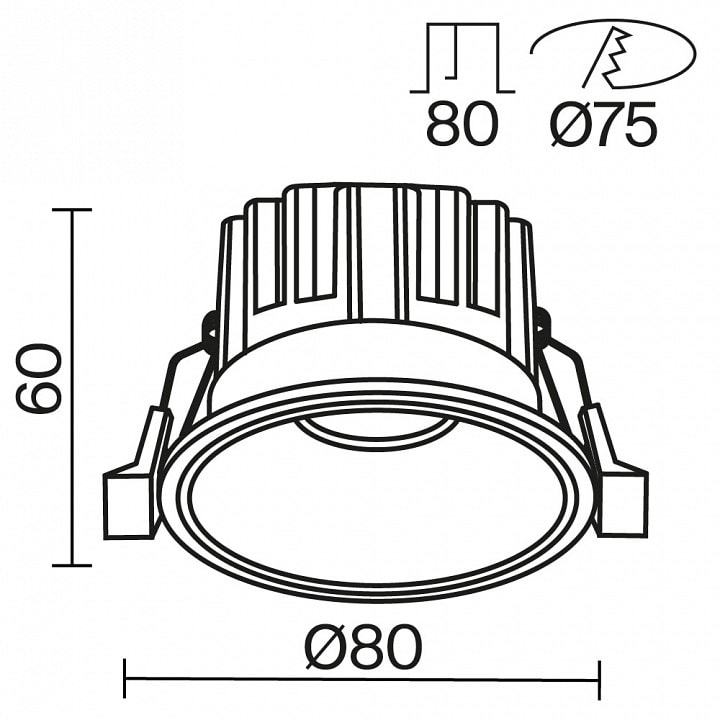 Установка светильника не требует особых навыков, а размер врезного отверстия в 75 мм позволяет легко интегрировать его в любой потолок. Масса всего 0.25 кг делает его легким и удобным в монтаже.