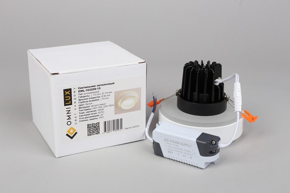 Легкий и компактный, весом всего 0.5 кг, светильник легко устанавливается и не требует сложного монтажа. Размер врезного отверстия составляет 70 мм, что позволяет без труда интегрировать его в потолок. Упаковка имеет размеры 130x125x110 мм, что делает его удобным для транспортировки.