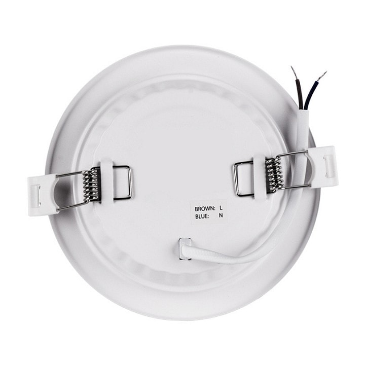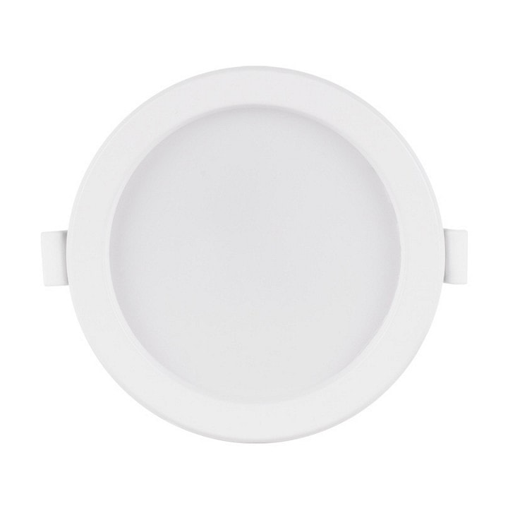 Светильник имеет встраиваемый дизайн, что позволяет легко интегрировать его в потолок. Размер врезного отверстия составляет 90 мм, а упаковка имеет размеры 123x123x40 мм, что делает его удобным для транспортировки и установки.