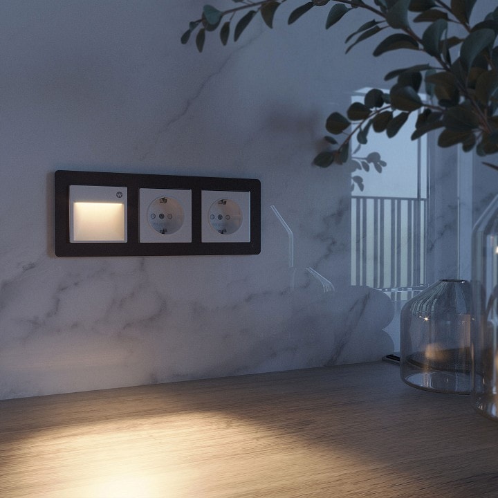 Произведенная в Швеции, заглушка Werkel сочетает в себе высокое качество и функциональность. Глубина устройства составляет всего 37 мм, а высота — 70 мм, что позволяет легко интегрировать его в стандартные подрозетники. Заглушка оснащена светодиодной лампой мощностью 1 Вт, обеспечивающей достаточное освещение для площади до 0.5 м².