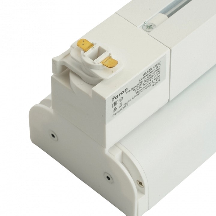 Светильник работает от сети с напряжением 220 В и требует использования однофазного трека для установки. Общая мощность, которую он может обеспечить, составляет 60 Вт, что позволяет использовать до 48 ламп в одном треке. Степень пылевлагозащиты IP 40 гарантирует надежную работу в различных условиях.