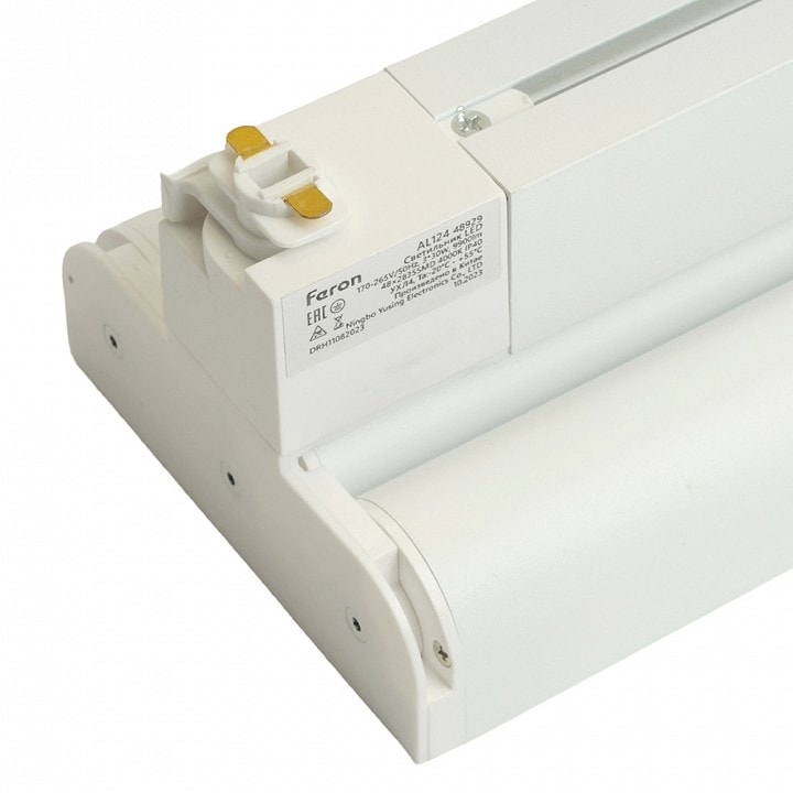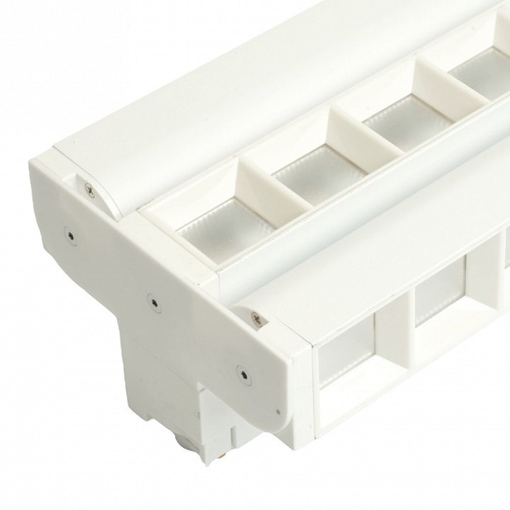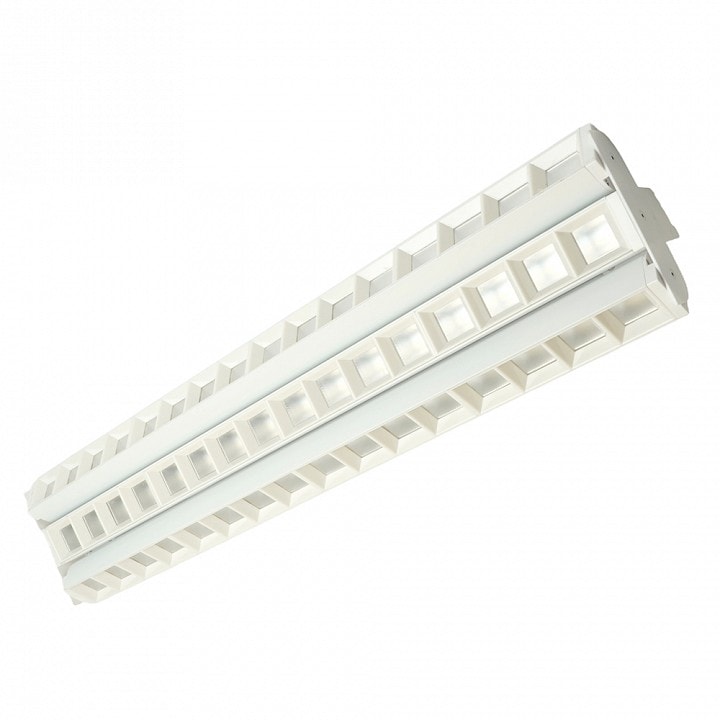 Светильник работает от стандартного напряжения 220 В и требует трек однофазный для установки. Его степень пылевлагозащиты IP 40 гарантирует надежную работу в офисных условиях, защищая от пыли и влаги.