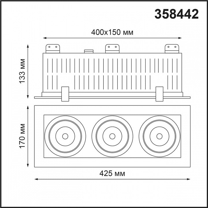 Светильник выполнен в техно-стиле, что делает его идеальным выбором для современных интерьеров. Его глубина составляет 133 мм, а размер врезного отверстия – 400х150 мм, что позволяет легко интегрировать его в потолочные конструкции. Благодаря светодиодным лампам, которые идут в комплекте, вы получите яркое и экономичное освещение с максимальной мощностью 4 Вт на лампу.