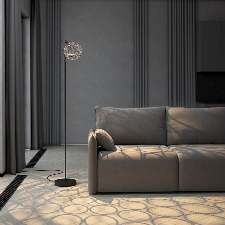 Торшер выполнен в современном стиле, что делает его идеальным выбором для тех, кто ценит минимализм и утонченность. С высотой 1530 мм и глубиной 235 мм, он легко впишется в любое пространство, а его компактные размеры позволяют разместить его даже в небольших помещениях.
