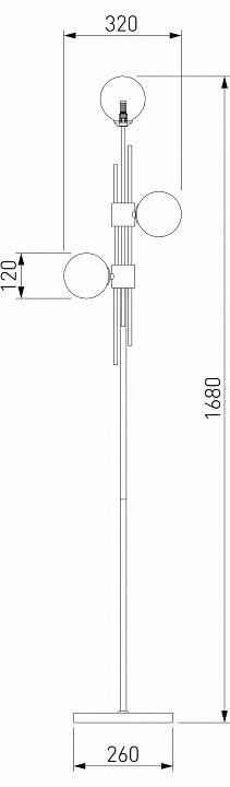 Торшер имеет высоту 1680 мм и глубину 260 мм, что делает его компактным и удобным для размещения в любом уголке комнаты. С тремя плафонами, направленными в стороны и вверх, он обеспечит равномерное освещение, создавая уютную атмосферу. Обратите внимание, что лампы в комплекте отсутствуют, но максимальная мощность каждой из них составляет 40 Вт, что позволяет использовать галогеновые лампы с цоколем G9.